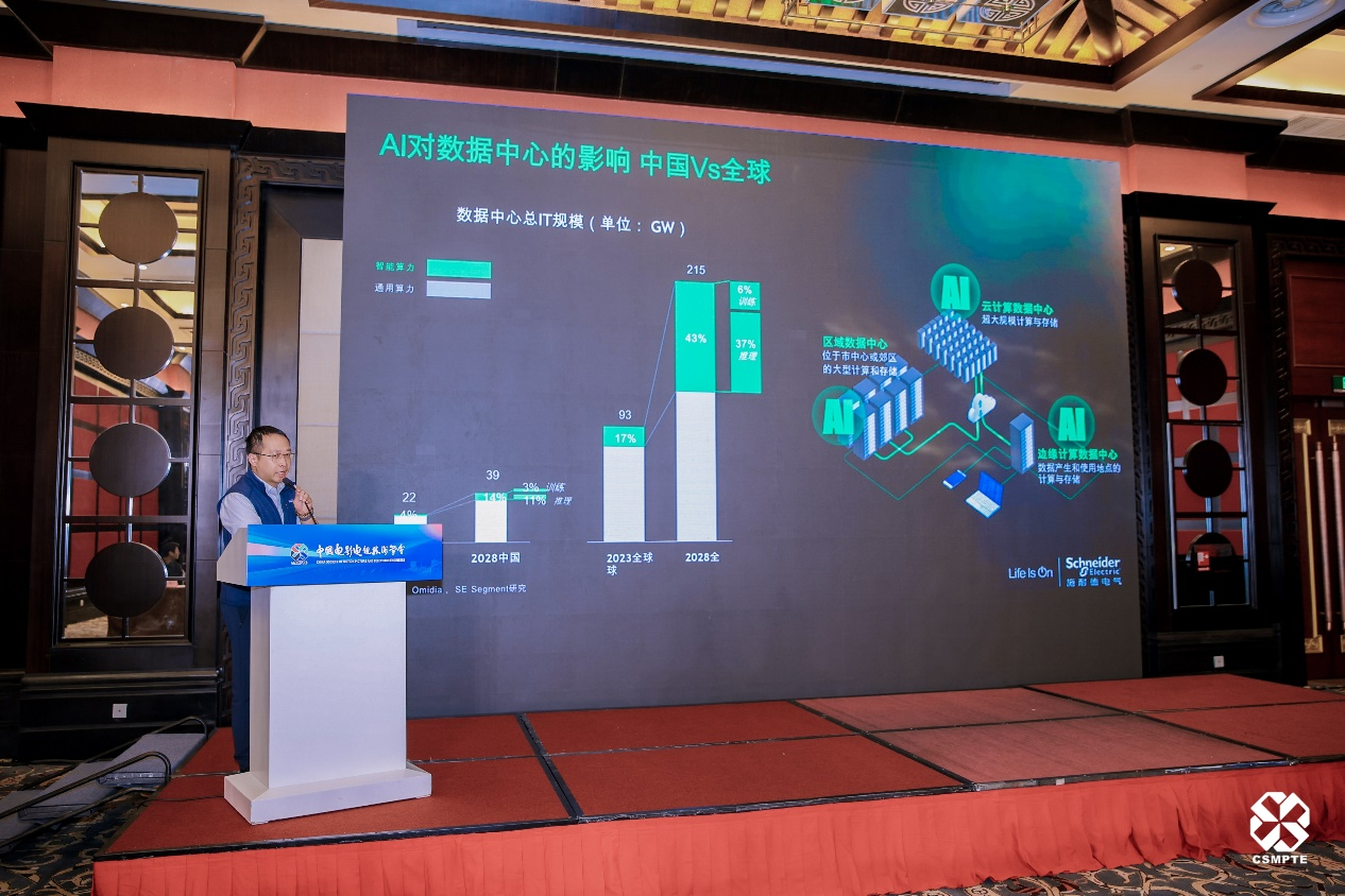 施耐德电气信息技术(中国)有限公司高级经理汤熠,围绕绿色低碳发展,分享了风液融合的一站式AIDC实践,强调未来可持续算力基础设施建设的重要性。